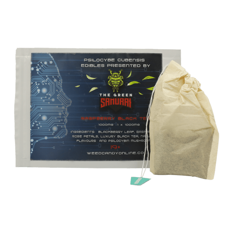 Ingredients: Raspberry Black Tea- Blackberry Leaf, Raspberry, Rose Petals, Luxury Black Tea, Natural Flavours and Psilocybe Mushrooms